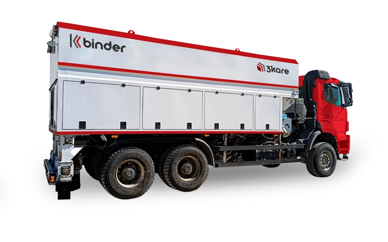 Geniş alanlı zemin operasyonlarında veriminizi artıran esnek tasarım. 3kare K-binder Toz Malzeme Serici; yüzey stabilizasyonu işlemlerinde ihtiyacınız olan araçtır. Bu mobil serici, hız kontrollü otomatik oransal sistemi sayesinde, çimento, kireç vb. toz malzemelerin, yüzeye istenilen oranlarda serilmesini sağlar. Fonksiyonel tasarımı sayesinde en iyi serme performansını garanti etmesinin yanı sıra kullanımı da oldukça kolaydır.
